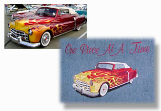 Our expert design team can create a digitized file of your car from a photograph. We proudly do all work here in the United States. Our files are never "sent out" for digitization. The above examples are only a few of the hundreds of designs that we have created for our customers. If you have a photo that you would like to have brought to life through embroidery, please feel free to contact us.